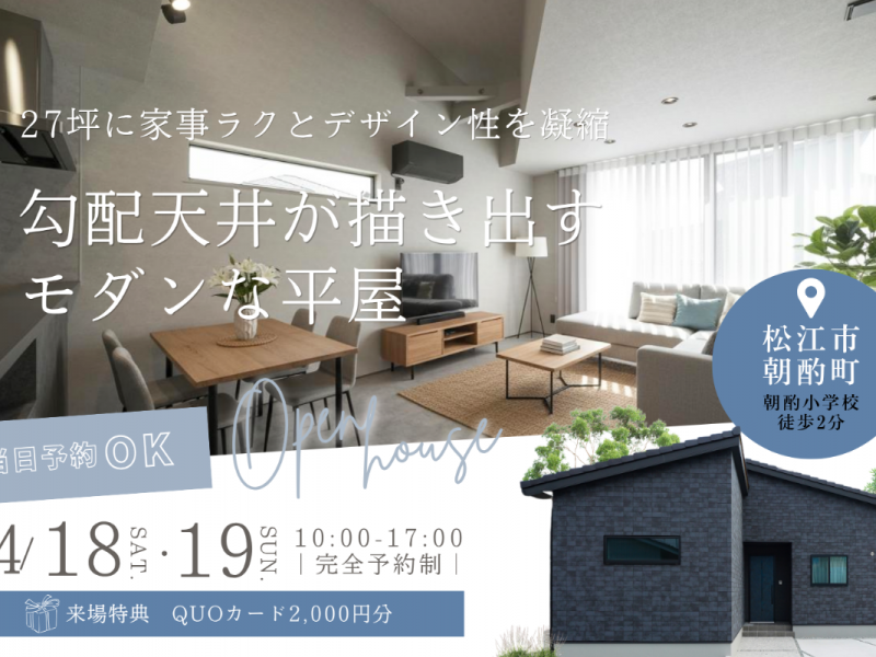 【4/18-19】2日間限定|勾配天井のモダンな平屋 完成見学会